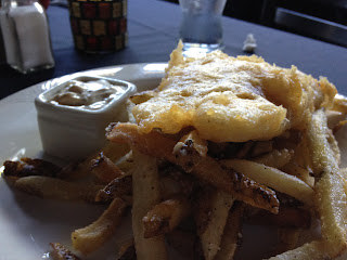 Dennis opted for another lunch special, the fish and chips, which was tempura-battered cod served over hand-cut fries. He said it was the best fish fry he’d ever had. You can catch a glimpse of it in the photo on the right. Yummy looking, no?