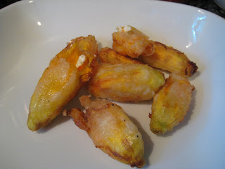 I reported all this to my grandmother with pride. When she made them, she didn’t stuff them, just battered and fried them up. I may try that another day, if I happen upon a bushel of blossoms for a good price before the season is over.