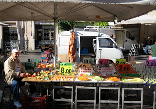 Roman zucchinis. I did not get my stuffed or fried zucchini blossoms because they were out of season, as were the carciofi (artichokes). So now I have to come back at least two more times in order to hit both of those seasons.