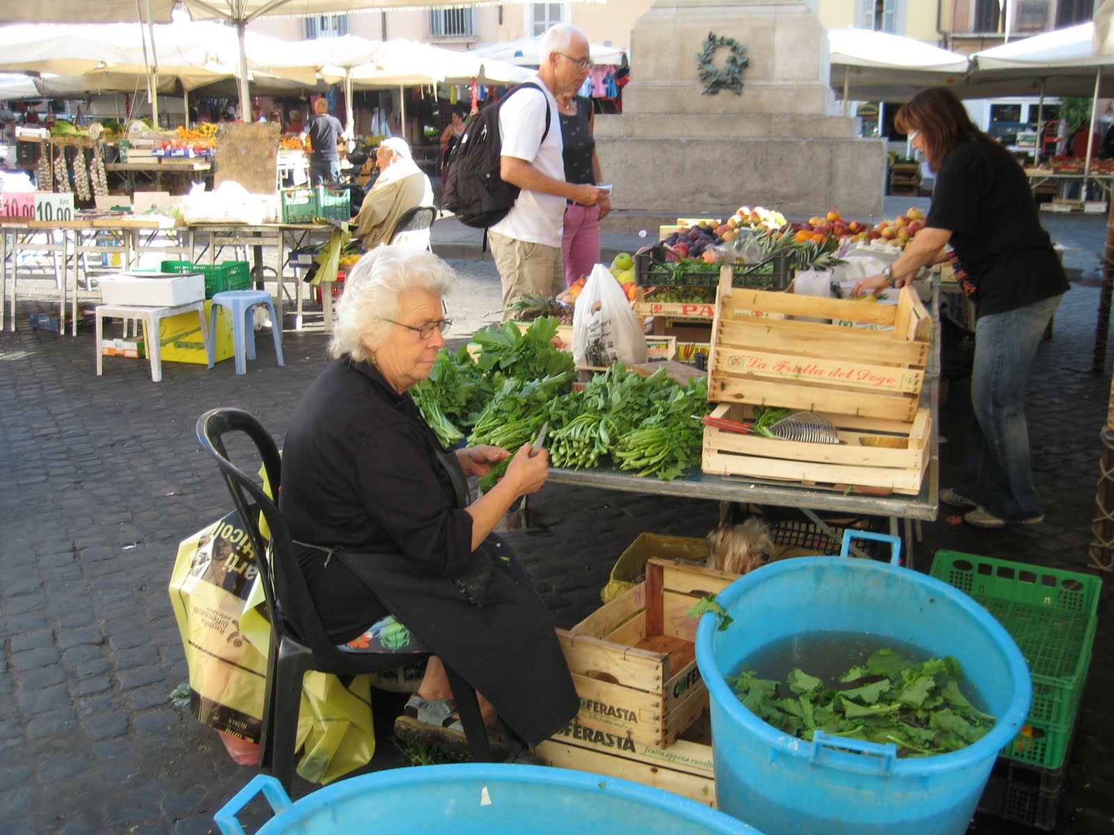 After attending 8 a.m. Mass in the side chapel of Chiesa Nuova, in front of the body of St. Philip Neri, I decided to bring this journey to a close by going full circle — back to where I began on my very first day: Campo di’Fiori. Make sure you get to this bustling market if you visit Rome. And bring cash so you can haggle and buy. Here are some scenes from the market this morning…