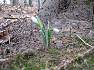 In the nine years that we have lived here, the one thing that has always been a herald of impending springtime has been that little snow drop in the photo above. No matter what kind of winter we’ve had, no matter how battered and bruised the ground, that hardy little blossom fights its way through the hard earth and offers us hope. In the muddy, brown backyard, it stands as a reminder of what is to come. New life is around the corner, and before we know it we will be surrounded by the bright greens of spring.