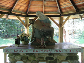 I’m in a pilgrim state of mind, so it seemed like a natural segue to go from sacred places in Rome to sacred places in upstate New York. One of my favorite pilgrimage sites only 45 minutes from my house is the Shrine of the North American Martyrs (above), where Blessed Kateri Tekakwitha was born and where Jesuit priests Isaac Jogues and Rene Goupil and lay missioner John LaLande where martyred. It’s a beautiful spot soaked with a spirituality that resonates with every step.