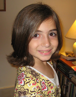 Short hair fever has taken over the Poust house. Olivia had her long locks shorn just yesterday. Here she is looking sophisticated yet adorable.