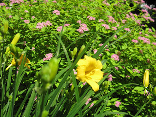 Although the wicked woodchuck (notice how the adjectives are getting progressively worse) is eating some of my plants, he has not eaten everything. Here are some shots of the stuff he hasn’t snacked on — yet. Marsh marigolds, spirea, lamb’s ear, day lilies and more spirea.