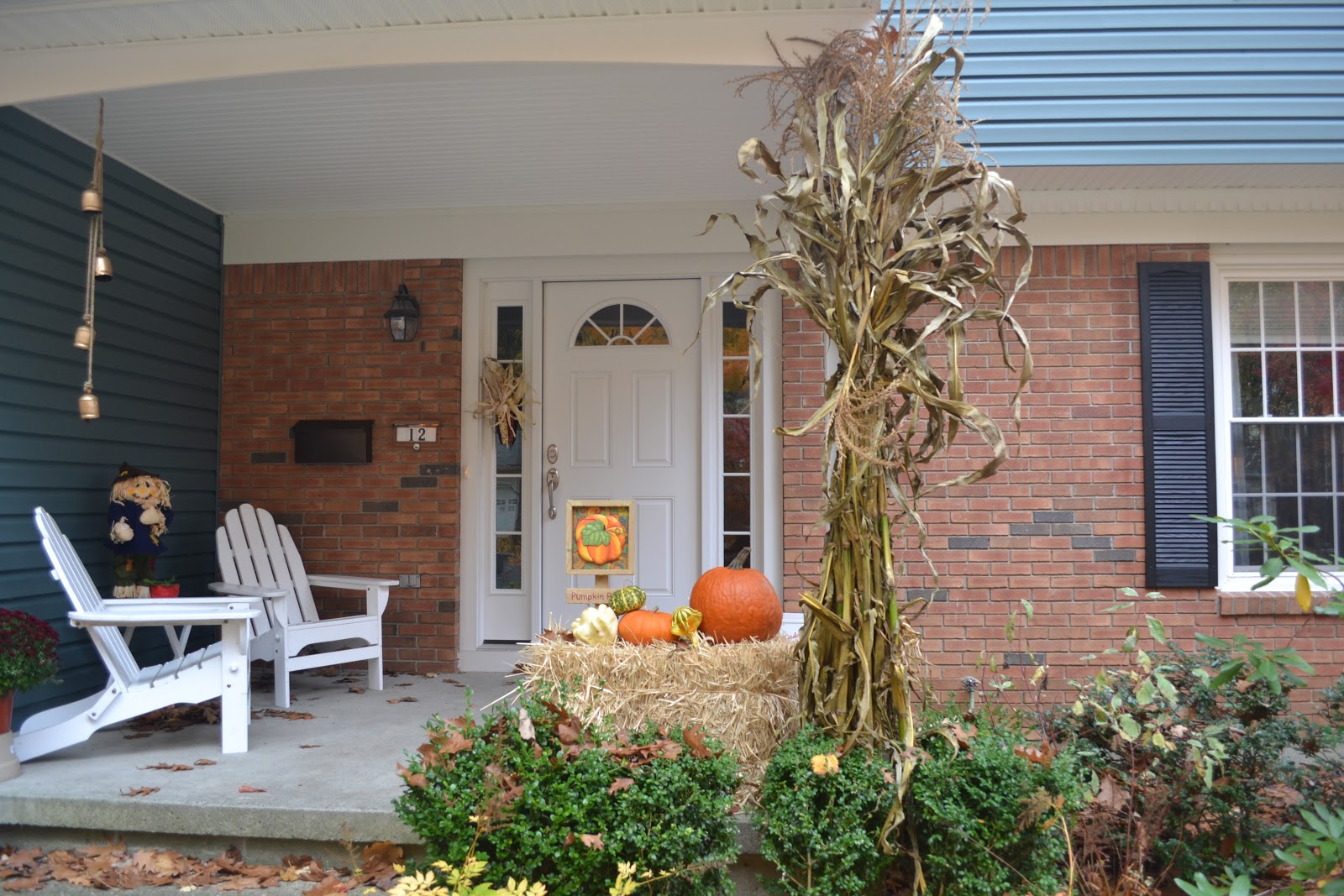 Here’s our autumn decor. It doesn’t look quite as picturesque now because the squirrels have eaten about one quarter of the pumpkin and a good chunk of the white gourd. No acorns this year. Not a one. So I guess the little critters are hungry.