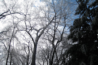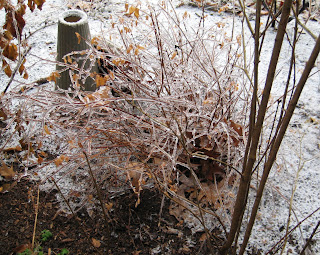 Here are some quick shots of the ice-coated trees in our yard. (If you click on the photos, you’ll get the full-size version where the ice is more visible.) We were lucky not to lose any limbs or whole trees so far. Some neighbors and friends did not fare so well. Now, as things warm up, you can hear the sheets of ice sliding off the house and crashing to the ground and porch. It sounds like we’re under an attack of some sort.